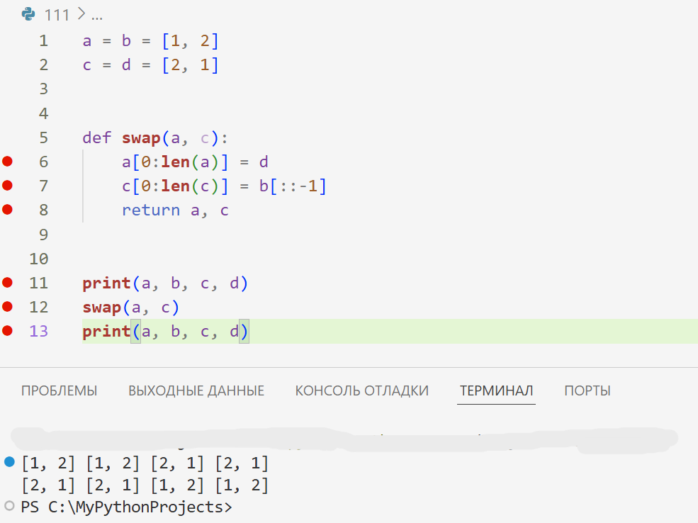 Иногда нужно поменять содержимое двух списков местами так, чтобы ссылки на них остались прежними.